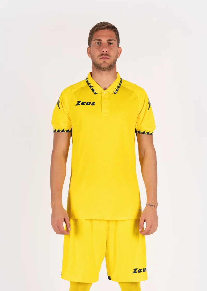 Caratteristiche Kit manica corta con trama in jacquard, tecnologia Waveknit. Colletto a polo, loghi Zeus in silicone e bordo maniche in costina di cotone jacquardato.